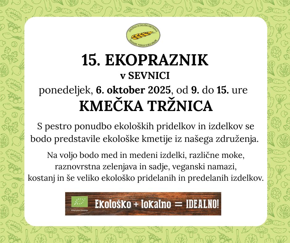 v ponedeljek, 6.10.2025 od 9. do 15 ure na Kmečki tržnici